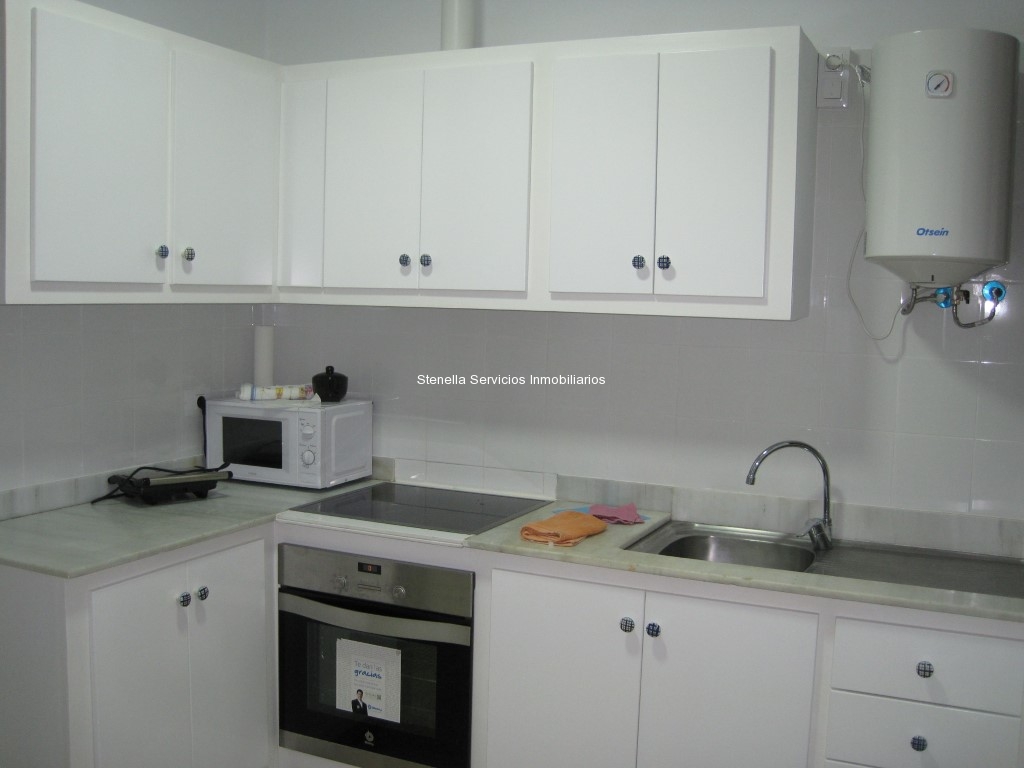 Distribuido en: tres  habitaciones, amplias con armarios empotrados, un  baño, salón, cocina,  y despensa.